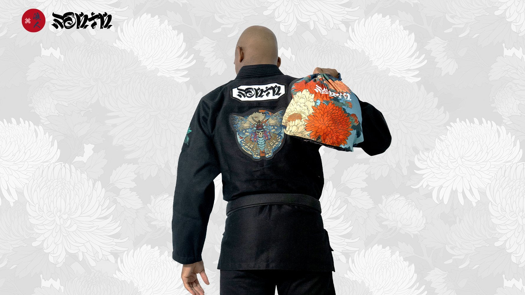 -Newly designed Ronin Brand Logo on the bicep area & bottom of pants. Japanese style moon crest. Traditional Ronin brand feather logo with the more Samurai style house of Chrysanthemum. Together they make for a much bolder and warrior like emblem. Exclusively design from BJJ artist Seymour Yang AKA Meerkatsu.