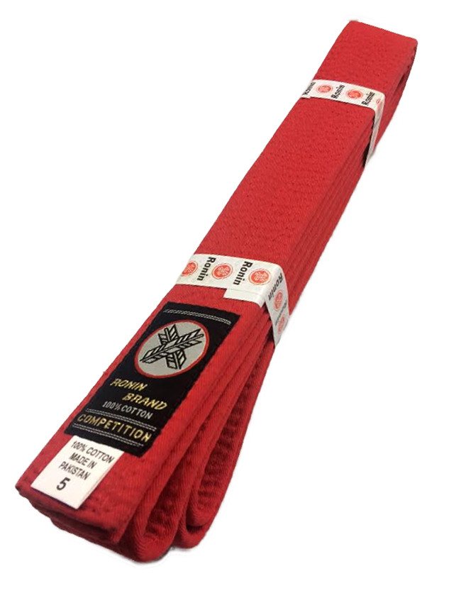 Deluxe high quality thick Red Belt. Made of 100% cotton & 1 3/4" wide. Extra strength with 12 stitch Sewn for extra durability.
