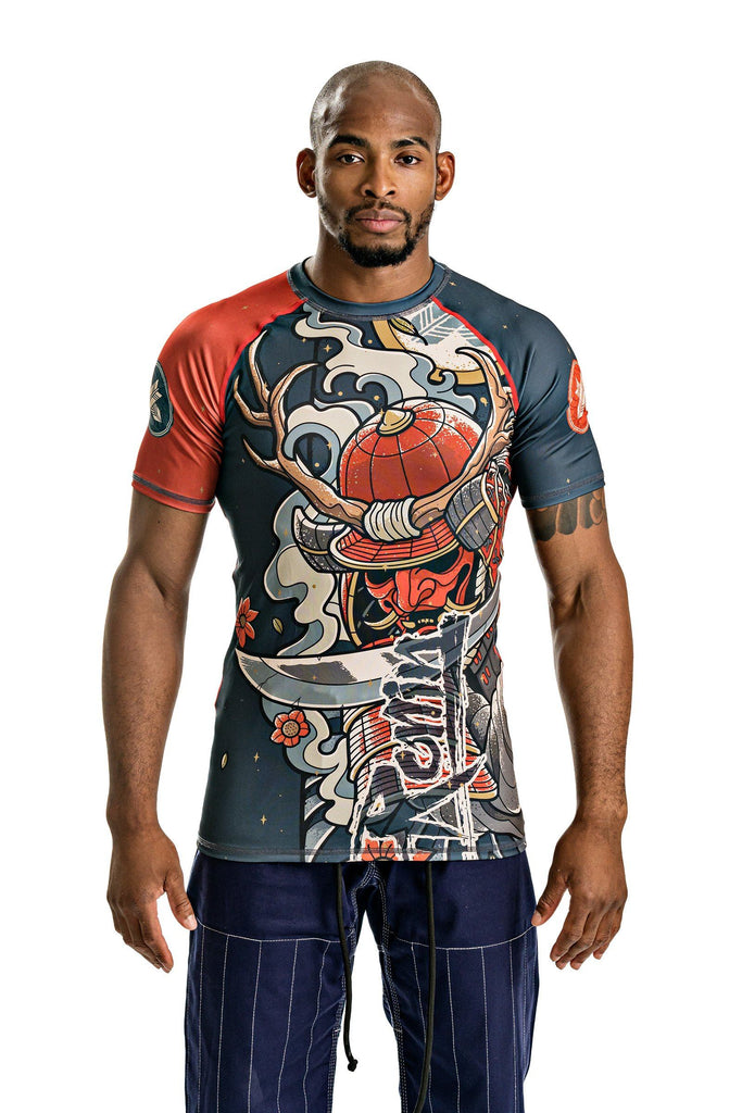 Ronin Oni Bushi (Samurai Demon) Compression Rash Guard Top. FEATURES: Lycra fabric- durable, stretchy and moisture wicking Fully sublimated graphics - logos and artwork won't fade, crack, or peel Snug...